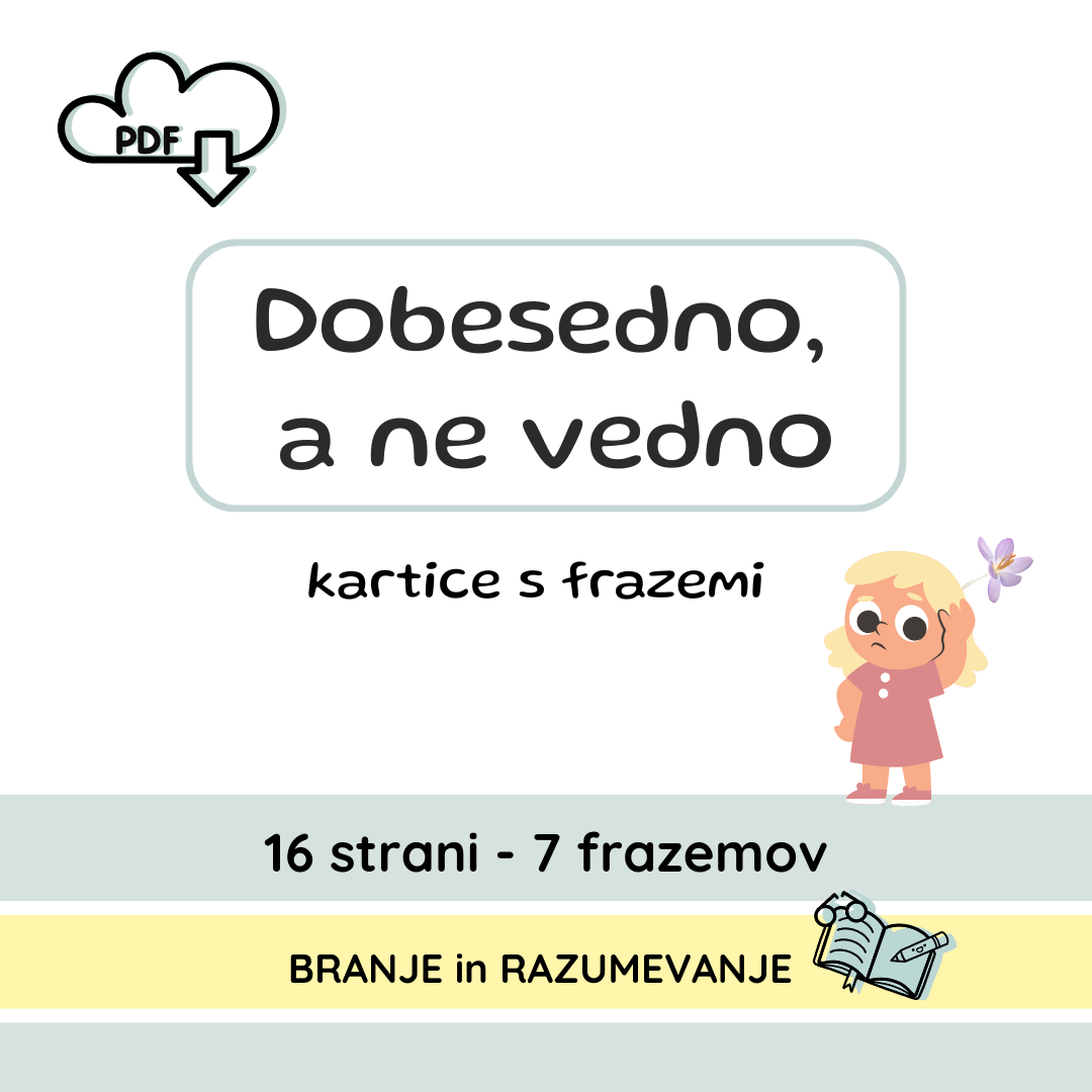 Učno gradivo DOBESEDNO, A NE VEDNO je namenjeno obravnavi in razumevanju frazemov – besednih zvez, katerih pomen ni dobeseden (npr. “Pojdi se solit.”).