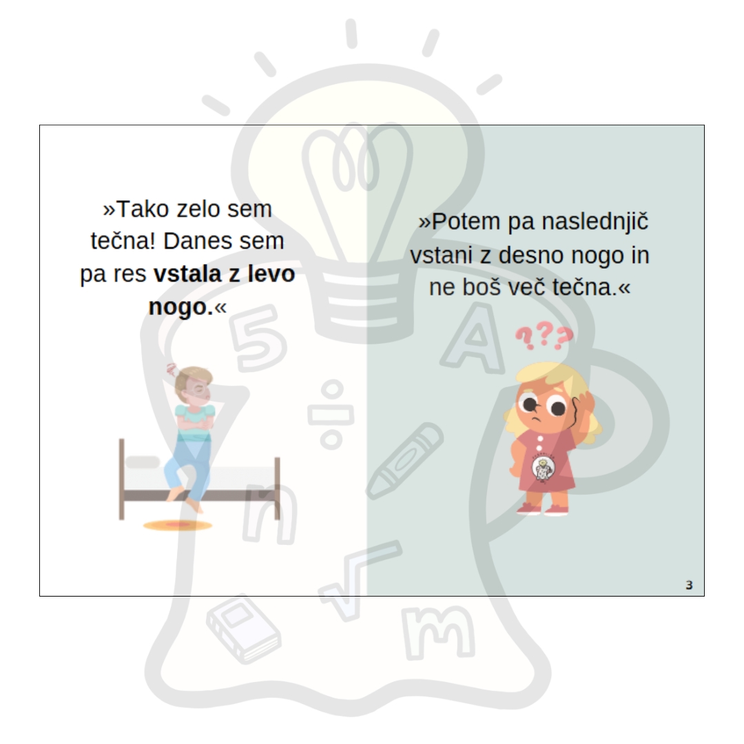 Cilj je, da otrok deklici pomaga RAZUMETI besedno zvezo. Pri tem si lahko pomaga z rešenim primerom (vsaka kartica ima rešen primer).