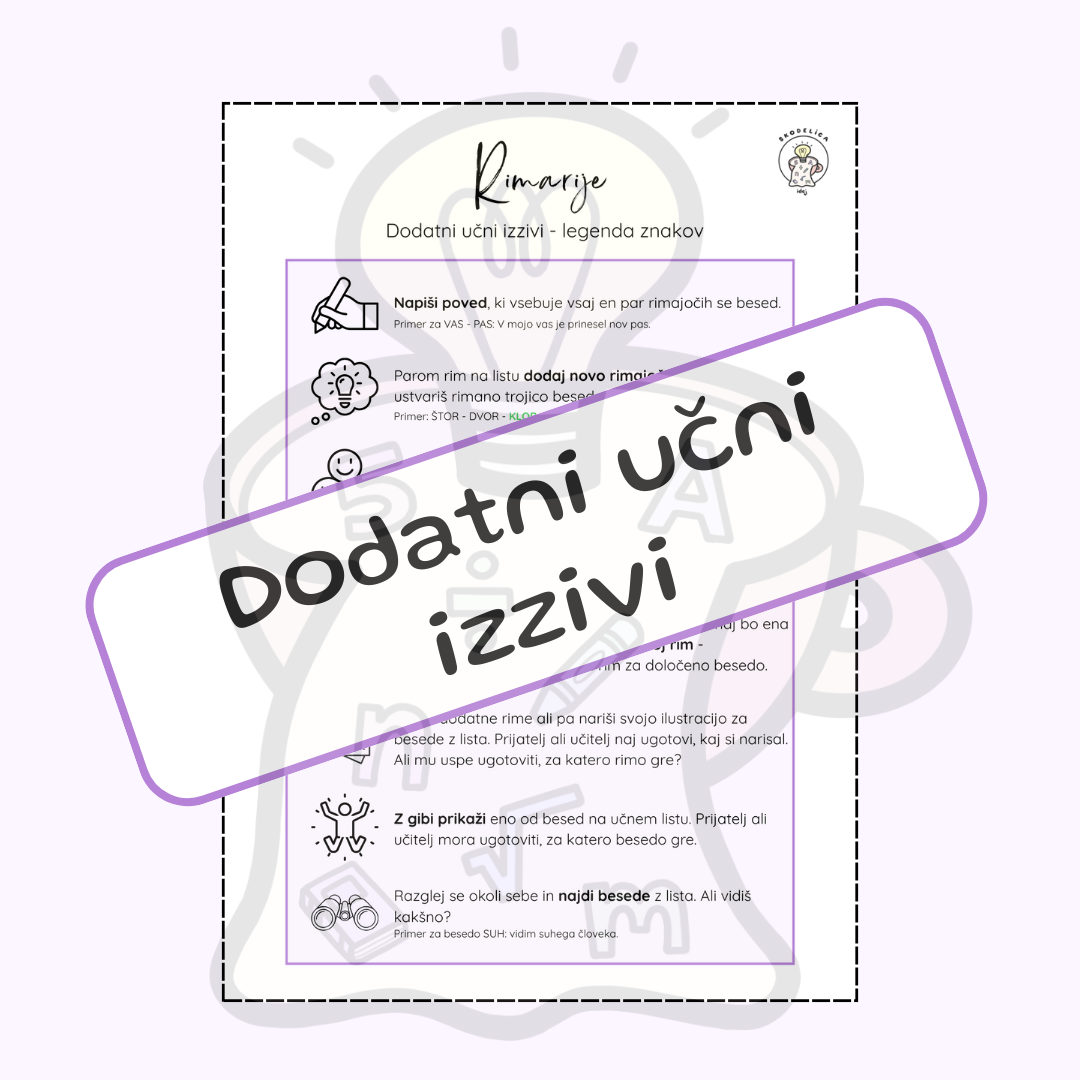 Učnim listom smo dodale tudi dodatne učne izzive za popestritev.