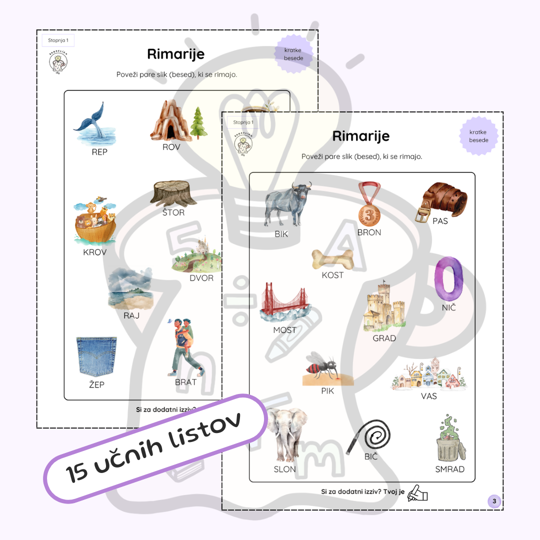 Učni listi RIMARIJE so namenjeni prepoznavanju rim.