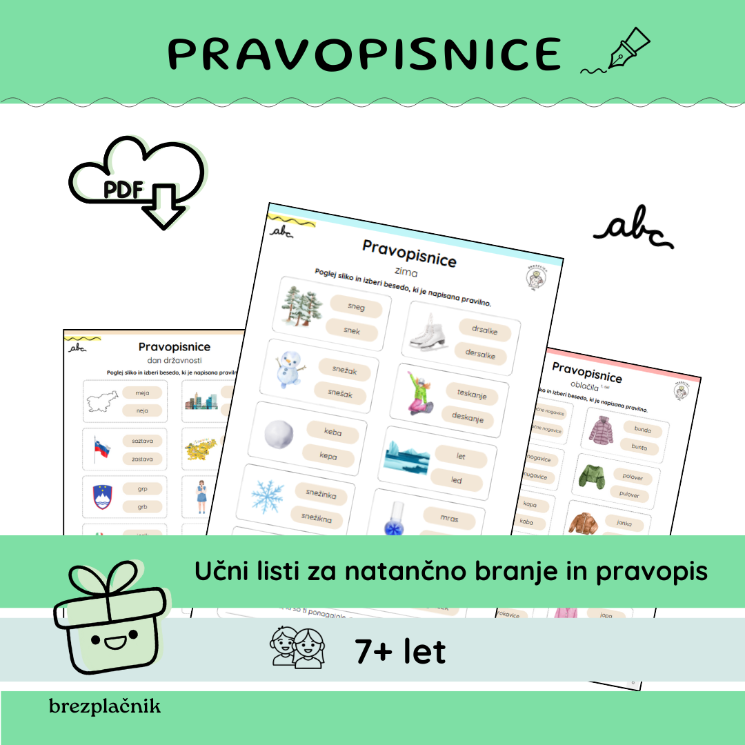 PRAVOPISNICE – učni listi za natančno branje in prepoznavanje pravilnega zapisa (brezplačnik)