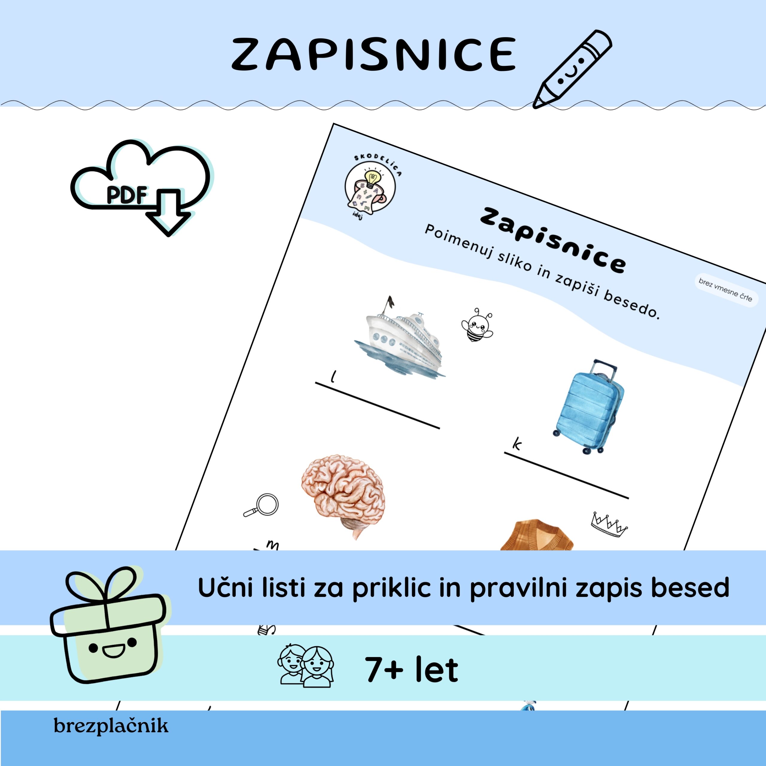 ZAPISNICE – učni listi za priklic in pravilni zapis besed (brezplačnik)